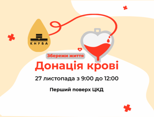 У четвер, 27 листопада, в КНУБА відбудеться донація крові для поранених військовослужбовців. Захід триватиме з 9:00 до 12:00 на першому поверсі Центру культури та дозвілля. Організатори запрошують студентів, викладачів і всіх небайдужих долучитися до ініціативи та зробити свій внесок у…