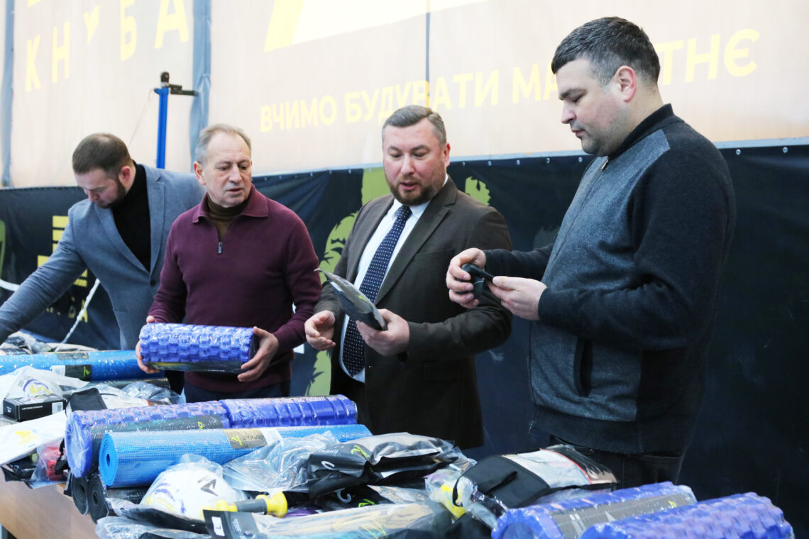Серед широкого переліку переданого спорядження – футбольні м’ячі і щитки, мінім’ячі для розвитку координації, еспандери, гантелі, ремені для тяги, килимки для занять, гаки для підтягування, атлетичні пояси і рукавиці, масажні ролики.